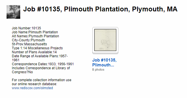 Overall, I am very pleased with my initial “research”. The folks at NOAP and FLO NHS have created some incredibly accessible resources. I have some primary sources to support future investigation in the landscape using methods such as photo analysis, conditions reports, and verification of features and elements. As we continue to build more supporting documentation about the Olmsted connection here at Plimoth, we will be looking in the near future for funding and scholarship opportunities to help investigate and document this landscape in further detail.